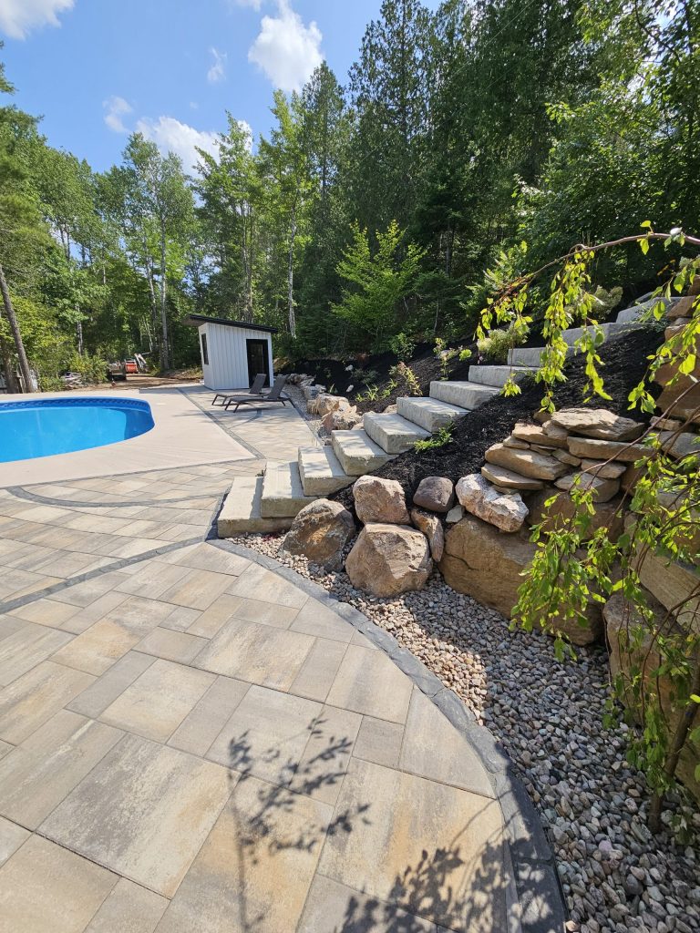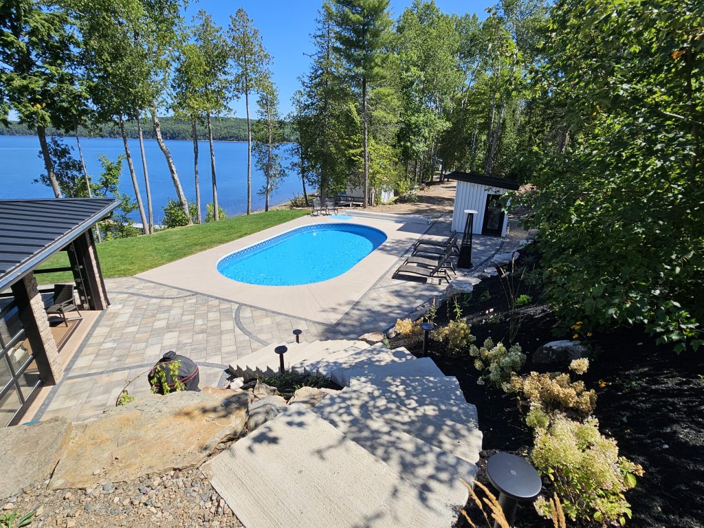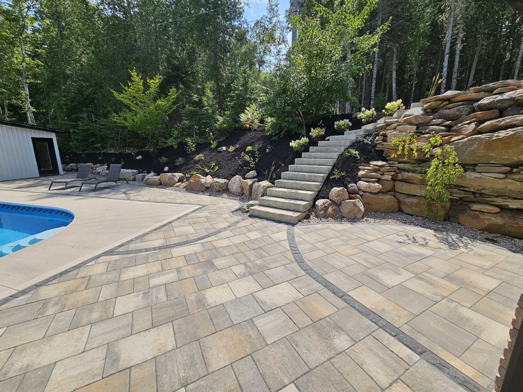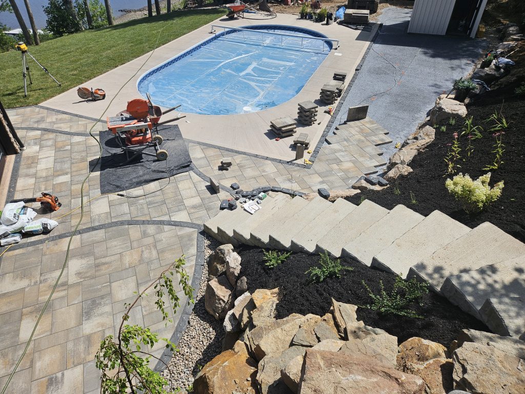 A key challenge was managing water flow from the cookhouse and pool patio. We carefully elevated and graded the pavers, incorporating drainage pipes to ensure proper runoff while maintaining a cohesive and polished look. The result is a landscape that is beautiful, functional, and perfectly integrated with the home’s architecture.