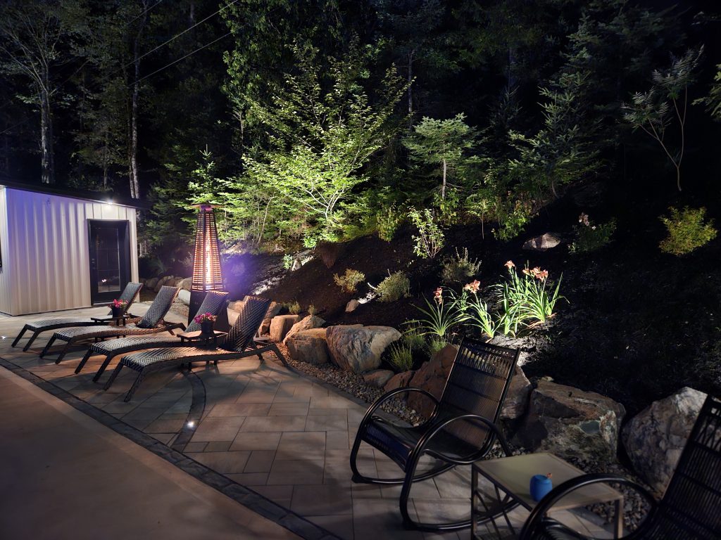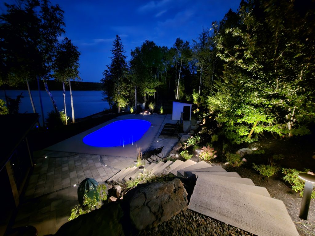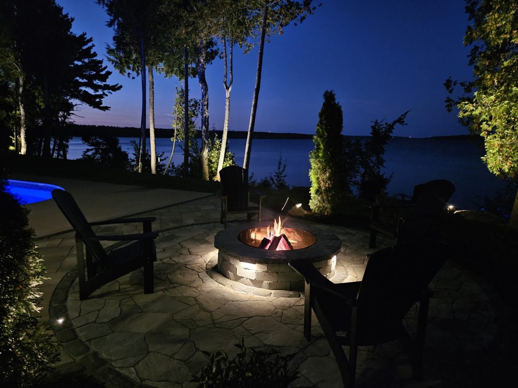 We expanded the patio around the ground-floor cookhouse and created a seamless connection to the pool area using stone that complements the house facade. Lawn areas with irrigation were added to reduce maintenance in this sunny location, while strategically placed night lighting enhanced both ambiance and usability.