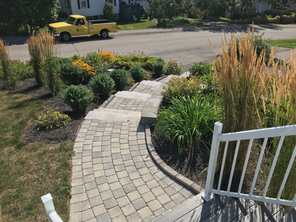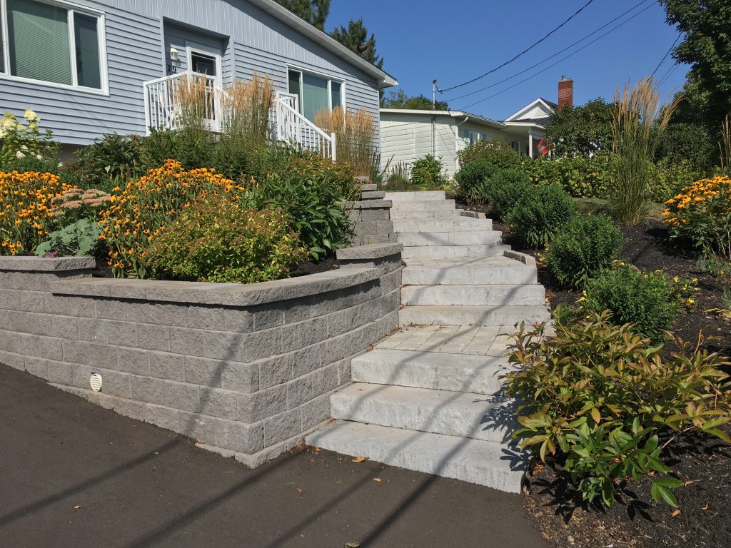 Low-maintenance planting beds were incorporated to soften the edges of the hardscape while providing defined areas for the homeowner to enjoy gardening safely. The result is a front entrance that balances practicality, safety, and curb appeal, offering a welcoming first impression while accommodating everyday use.