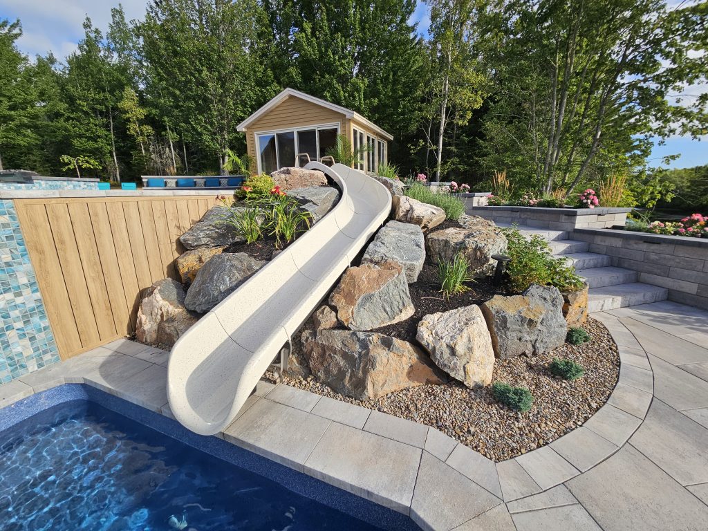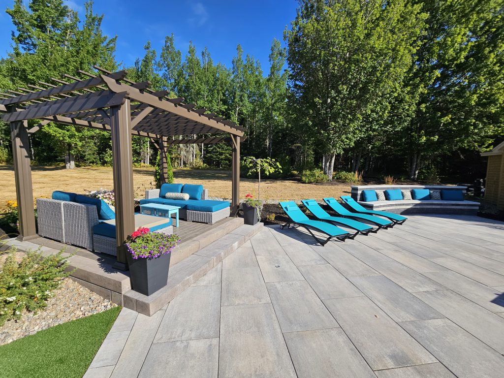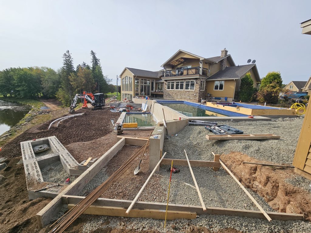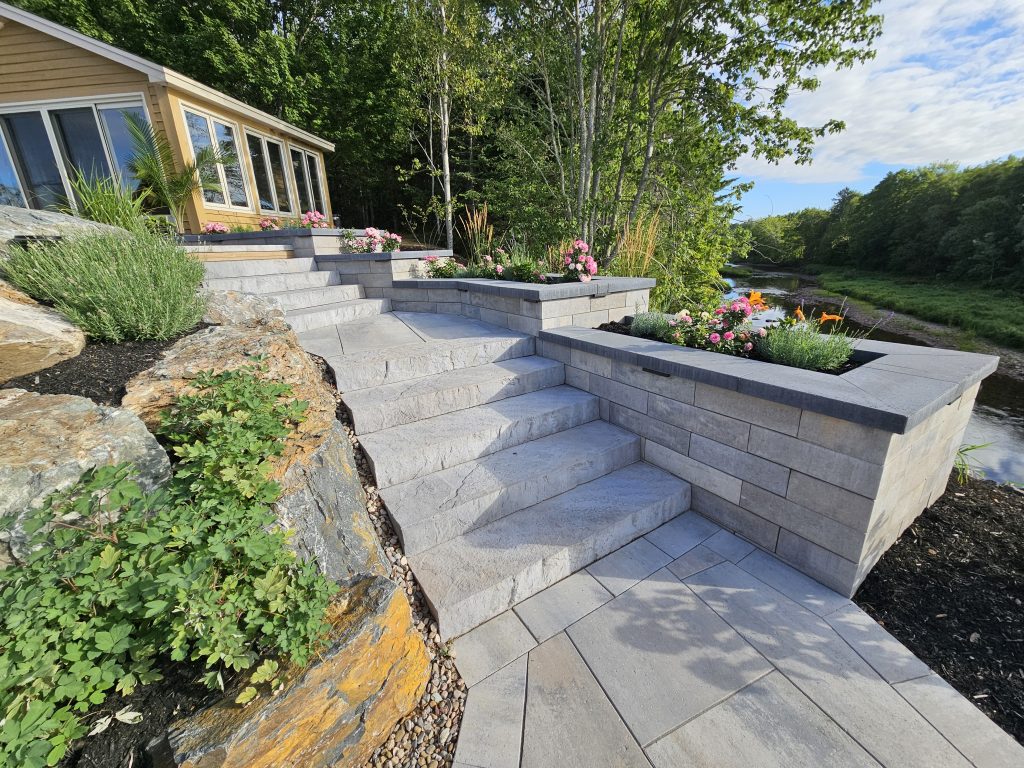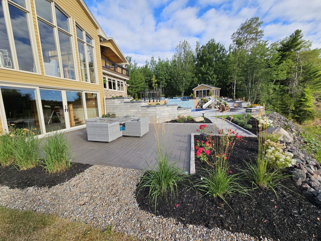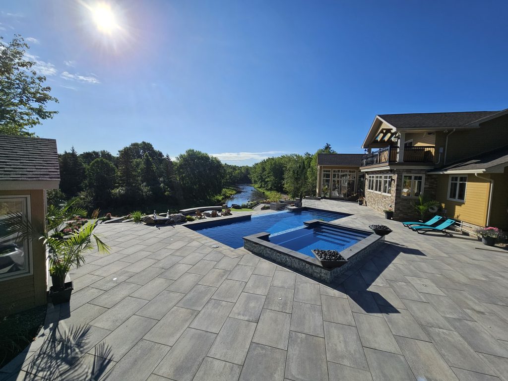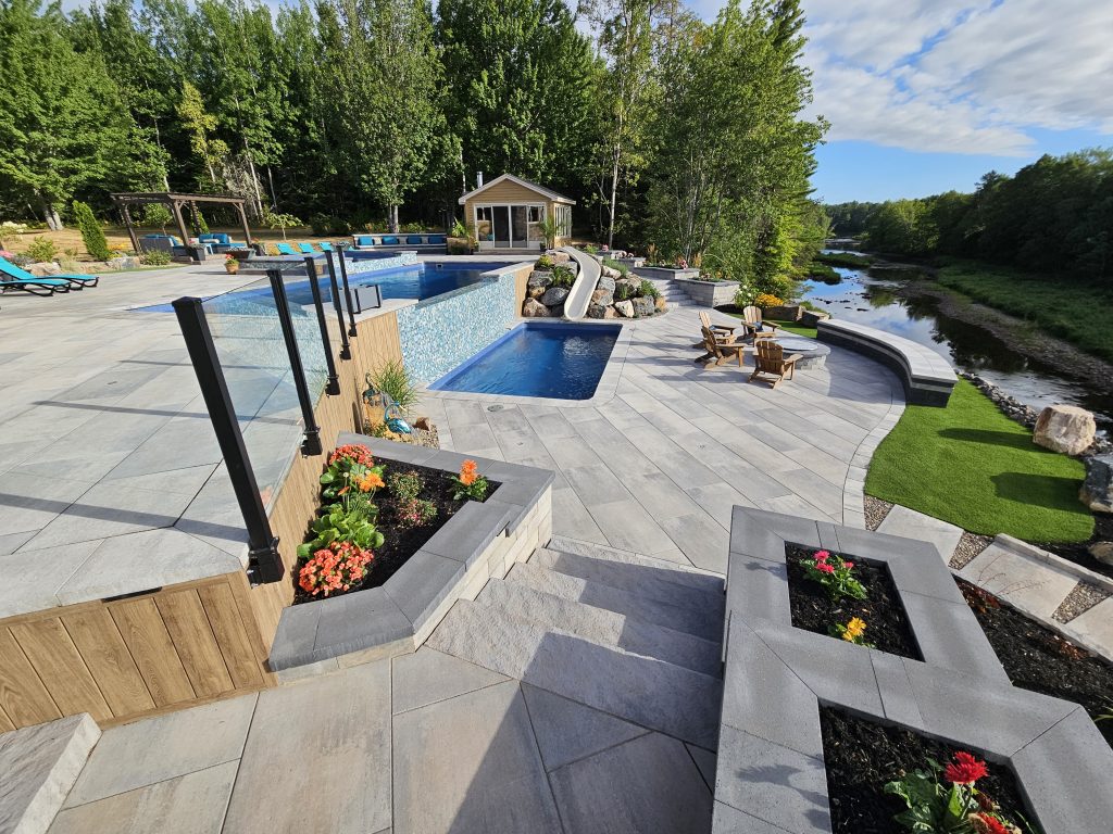 As the sun sets, the landscape lighting creates a warm atmosphere, and the cozy fire area overlooking the river becomes the ideal gathering spot. Every detail was carefully planned and crafted to bring the homeowners' vision to life, ensuring that this retreat is both functional and beautiful.